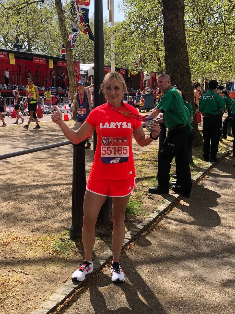 Ларисі і справді було непросто бігти той марафон. Але вона уже готується до забігу на Чемпіонаті світу. У свої 53 роки бігає так швидко, як мені і не снилося. А поки я стою у черзі за такою ж медалькою, як у Лариси, ми поговорили про все на світі. А точніше – про головне. Про біг.